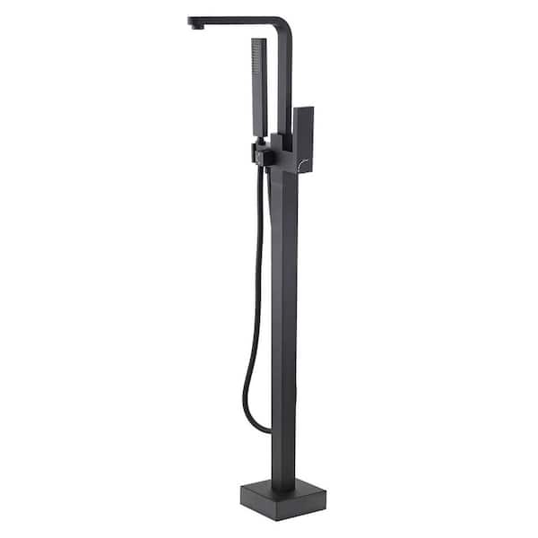 Single-Handle Freestanding Bathtub Faucet with Hand Shower Floor Mount in Matte Black