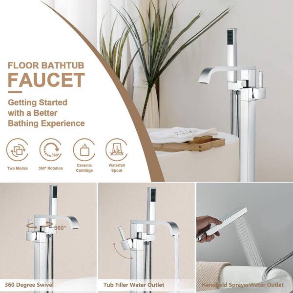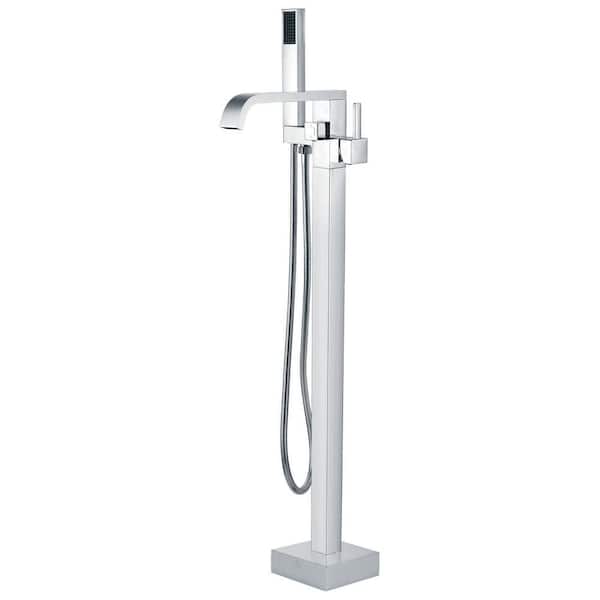 Single-Handle Freestanding Bathtub Faucet with Hand Shower Floor Mounted in Chrome