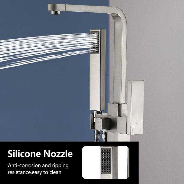 Single-Handle Freestanding Tub Faucet with Hand Shower Floor Mount in Brushed Nickel