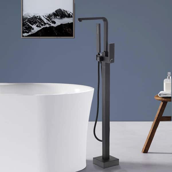 Single-Handle Freestanding Tub Faucet with Hand Shower Floor Mount in Matte Black