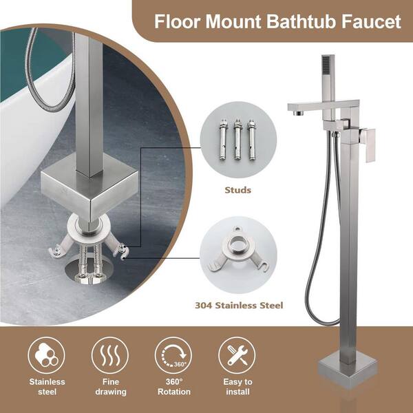 Single-Handle Freestanding Tub Faucet with Hand Shower Head in Brushed Nickel