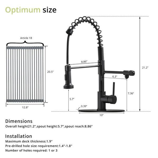 Single-Handle Pull-Down Sprayer Kitchen Faucet with Drying Rack in Matte black