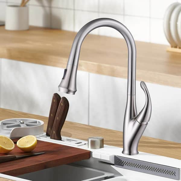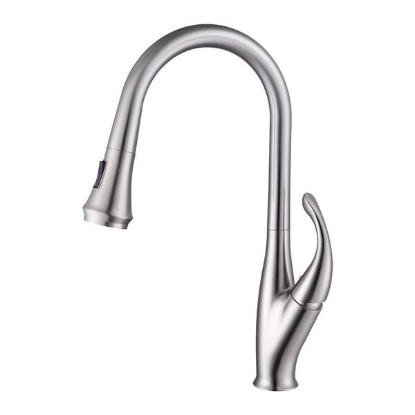 18.31 in. Single Handle Stainless Steel 360 ° Spout Swive Pull Down Sprayer Kitchen Faucet in Brushed Nickel