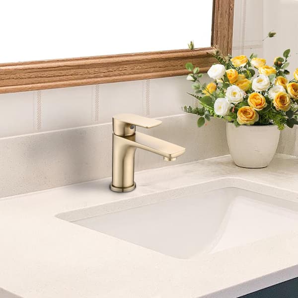 Single Handle Single-Hole Bathroom Lavatory Basin Brass Sink Faucet with Spot Resistant in Brushed Gold