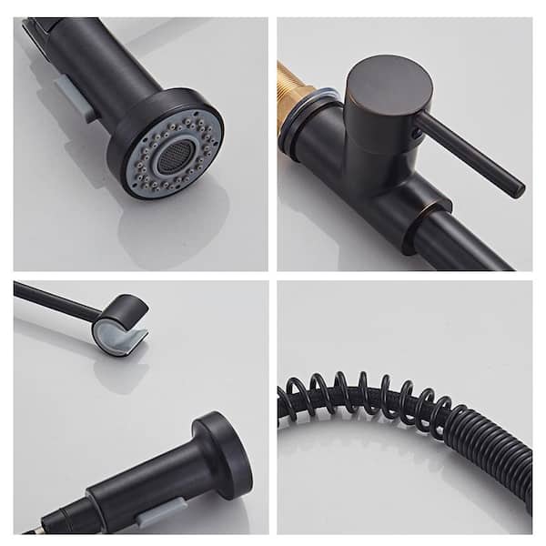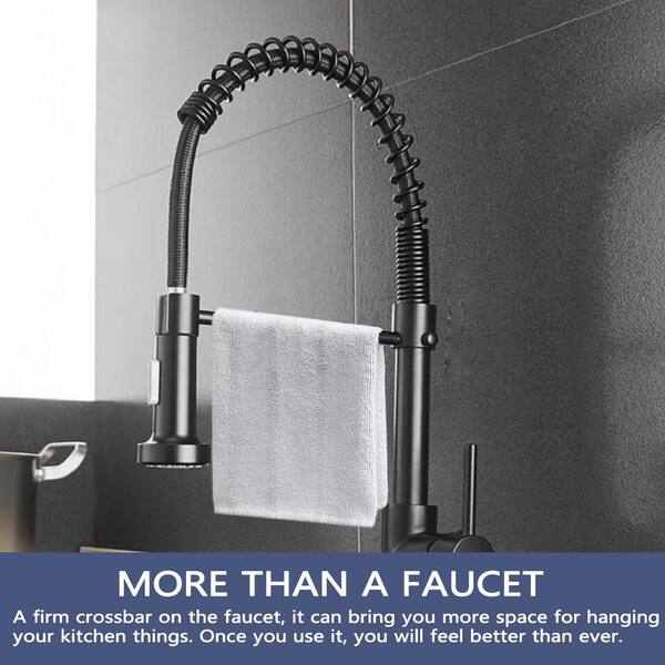Single Handle Wall Mount Stainless Steel Pull Down Sprayer Kitchen Faucet in Matte Black