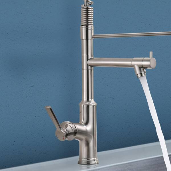Spring Single Handle Pull Down Sprayer Kitchen Faucet with spray and stream in Brushed Nickel