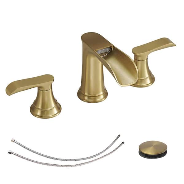 Waterfall 8 in. Widespread Double Handle Stainless Steel Bathroom Faucet in Brushed Gold