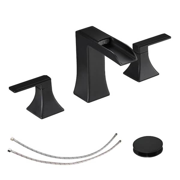 Waterfall 8 in. Widespread Double Handle Stainless Steel Bathroom Faucet in Matte Black