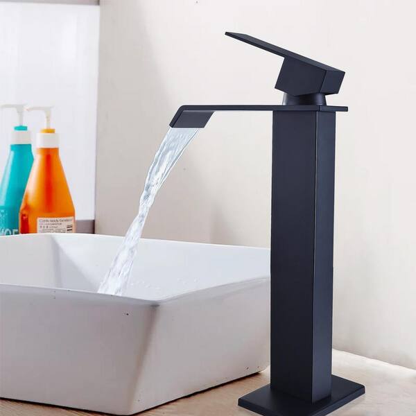 Waterfall Single-Handle Single-Hole Bathroom Faucet in Matte Black