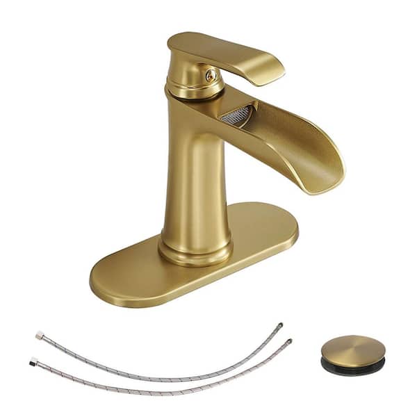 Waterfall Single Handle Stainless Steel Bathroom Faucet in Brushed Gold