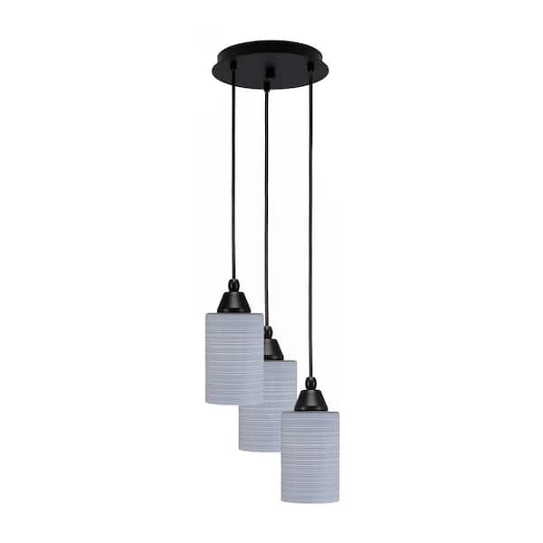 Savannah 10 in. 3-Light Matte Black Cord Pendant Light Gray Matrix Glass Shade