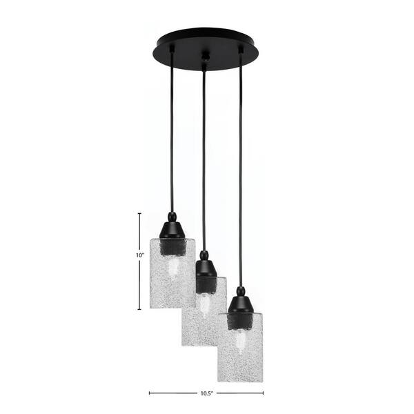 Savannah 10 in. 3-Light Matte Black Cord Pendant Light Smoke Bubble Glass Shade