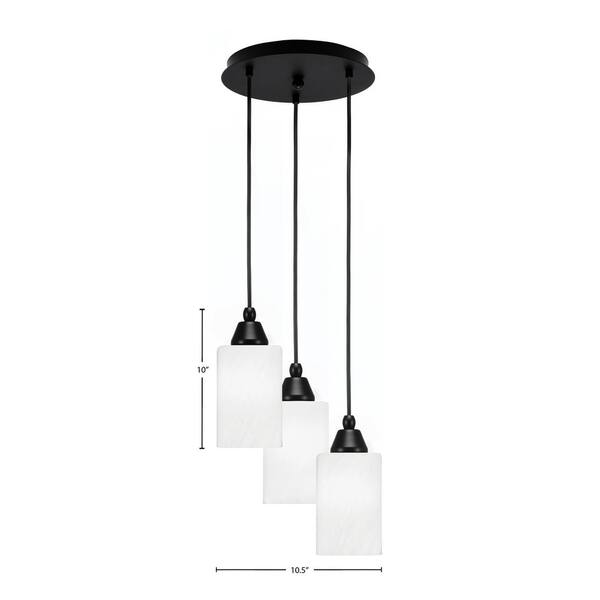 Savannah 10 in. 3-Light Matte Black Cord Pendant Light White Marble Glass Shade
