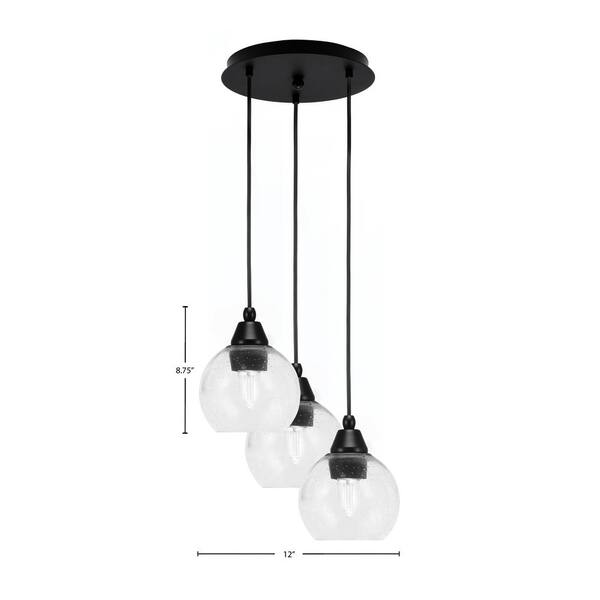 Savannah 8.75 in. 3-Light Matte Black Cord Pendant Light Clear Bubble Glass Shade