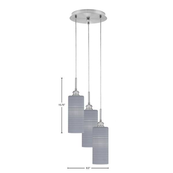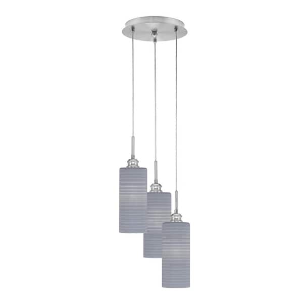 Savannah 9.5 in. 3-Light Brushed Nickel Cord Pendant Light Gray Matrix Glass Shade