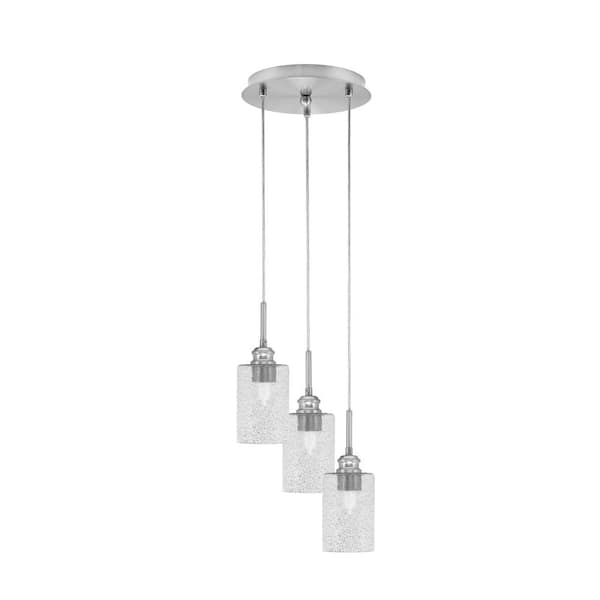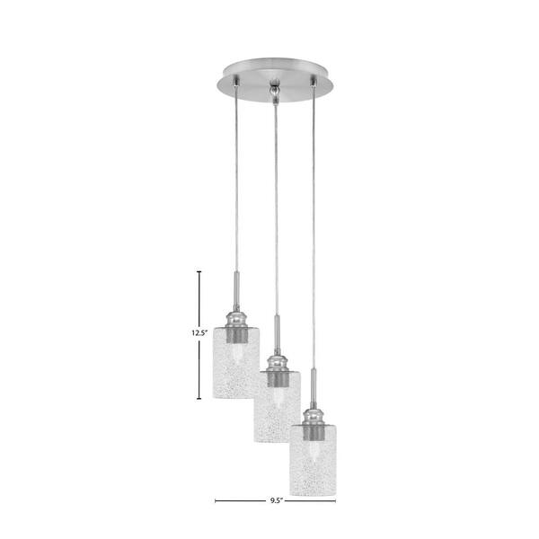 Savannah 9.5 in. 3-Light Brushed Nickel Cord Pendant Light Smoke Bubble Glass Shade