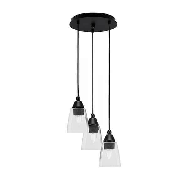 Savannah 9 in. 3-Light Matte Black Cord Pendant Light Square Clear Bubble Glass Shade