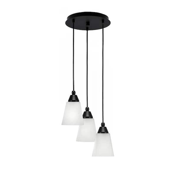 Savannah 9 in. 3-Light Matte Black Cord Pendant Light Square White Muslin Glass Shade