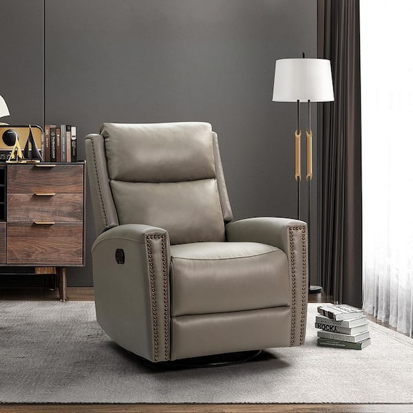 Savino Minimalist design 30.31 in. Wide Genuine Leather Swivel Rocker Recliner with Nailhead Trim and Tufted Back- Dove