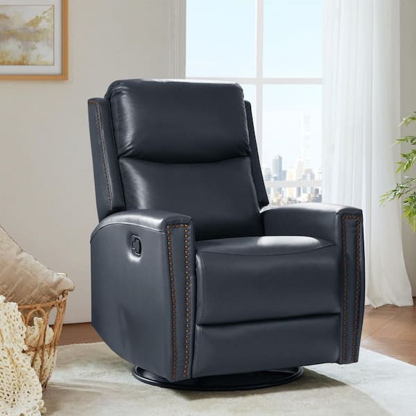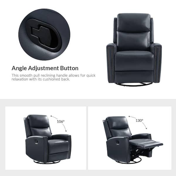 Savino Minimalist design 30.31 in. Wide Genuine Leather Swivel Rocker Recliner with Nailhead Trim and Tufted Back- Navy