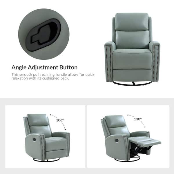 Savino Minimalist design 30.31 in. Wide Genuine Leather Swivel Rocker Recliner with Nailhead Trim and Tufted Back -Sage