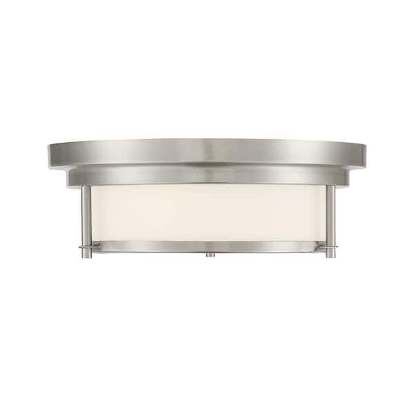 13 in. W x 4.5 in. H 2-Light Brushed Nickel Flush Mount Light with White Glass Cylindrical Shade