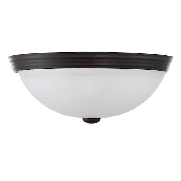 13 in. W x 5 in. H 2-Light English Bronze Flush Mount Ceiling Light with White Etched Glass Diffuser