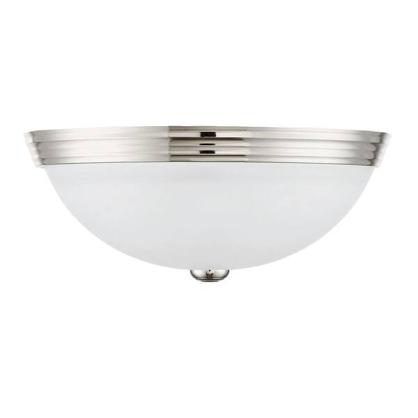13 in. W x 5 in. H 2-Light Polished Nickel Flush Mount Ceiling Light with Etched Glass Diffuser