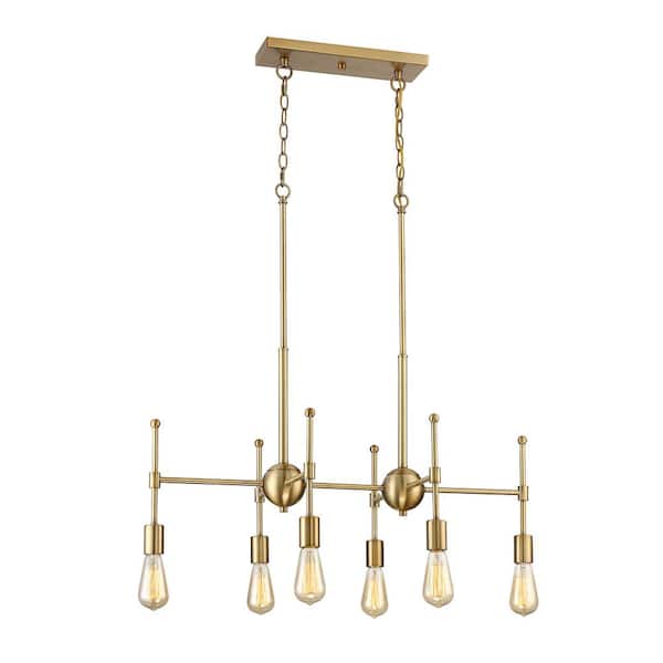 30.5 in. W x 29.75 in. H 6-Light Natural Brass Metal Chandelier