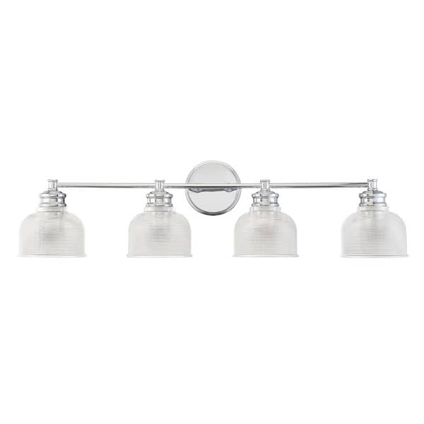 32 in. W x 9.25 in. H 4-Light Chrome Bathroom Vanity Light with Clear Glass Shades