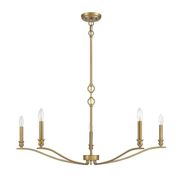 42 in. W x 15 in. H 5-Light Natural Brass Candlestick Chandelier with Curved Arms