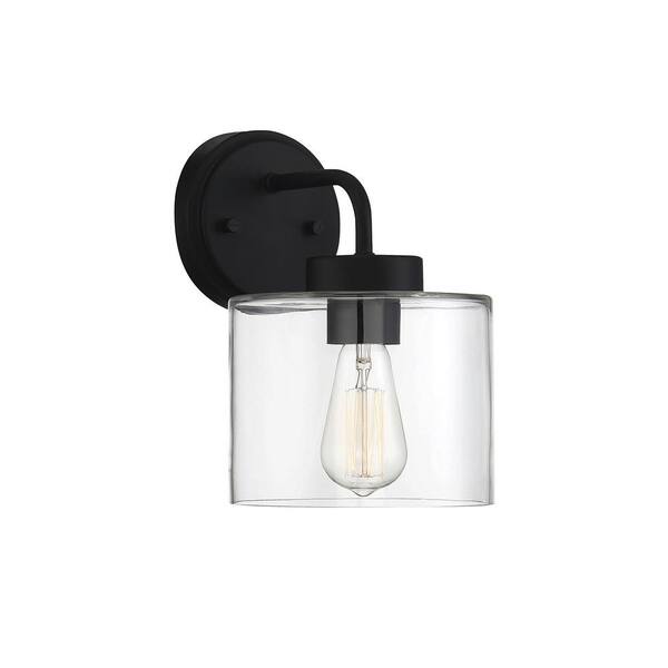 7 in. W x 10.5 in. H 1-Light Matte Black Hardwired Outdoor Wall Lantern Sconce with Clear Glass Shade