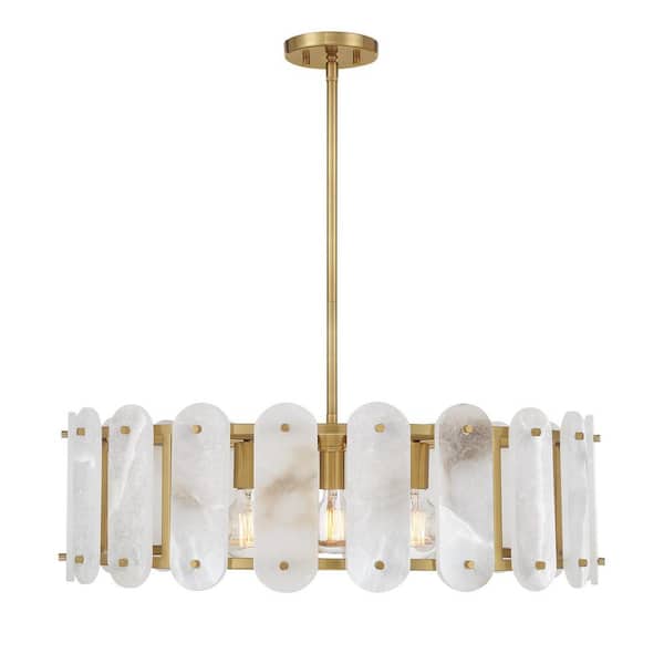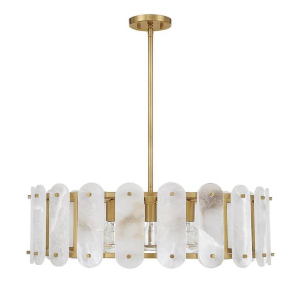 Antolini 28.5 in. W x 8.38 in. H 5-Light Warm Brass Pendant Light with Natural Alabaster Stone, No Bulbs Included