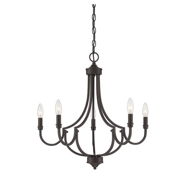 Auburn 24 in. W x 22 in. H 5-Light English Bronze Wide Metal Chandelier with Curving Arms and Thumbscrew Detail
