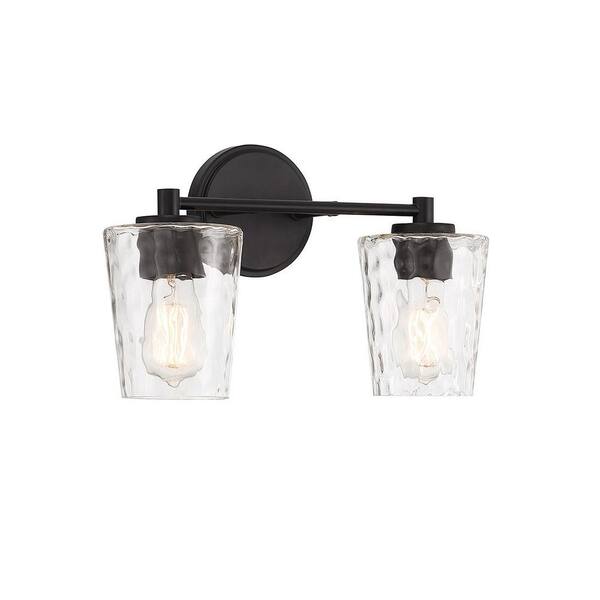Ballas 15.50 in. 2-Light Matte Black Vanity Light with Clear Hammered Glass Shades