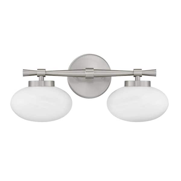Barrow 17 in. W x 8 in. H 2-Light Satin Nickel Bathroom Vanity Light with Strie Glass Shades