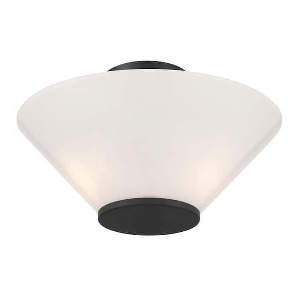 Blair 15 in. 3-Light Matte Black Transitional Convertible Semi-Flush Mount or Hanging Pendant with Strie Glass Shade