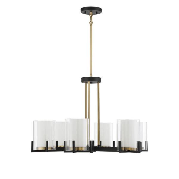 Eaton 28 in. W x 17.5 in. H 6-Light Matte Black with Warm Brass Accents Chandelier with Clear/White Opal Glass Shades
