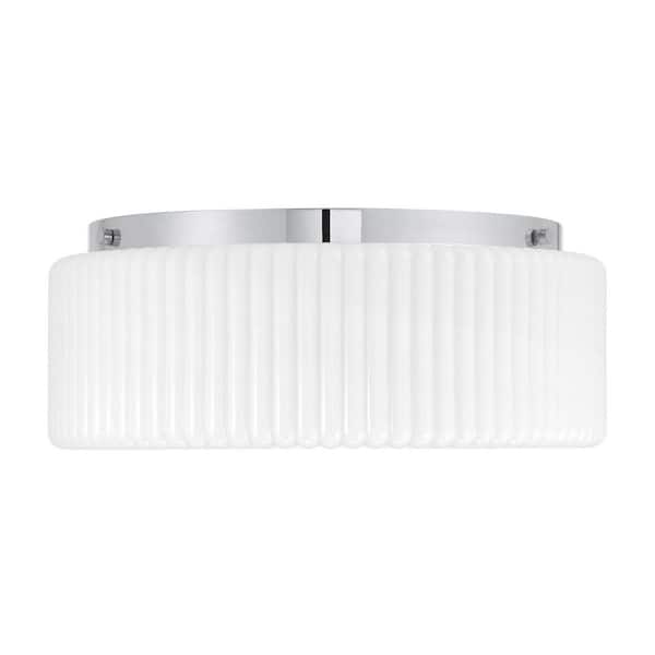 Edgemont 20 in. 4-Light Chrome Vintage Flush-Mount Ceiling Light with Ribbed Strie Glass Shade
