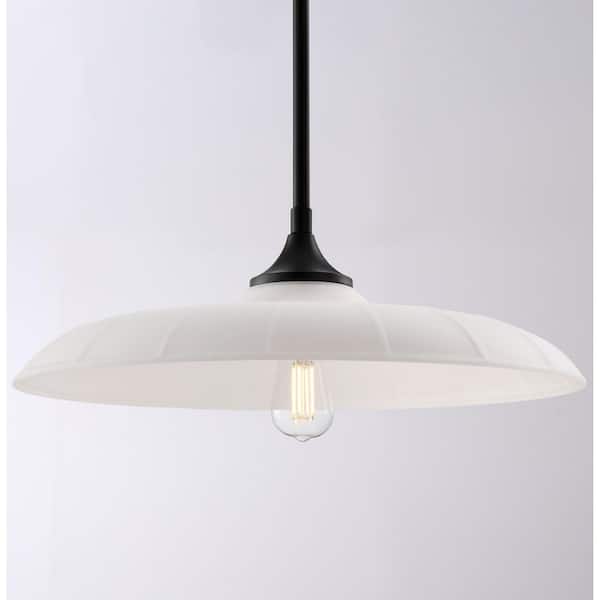 Hadley 60-Watt 20 in. W x 6.63 in. H 1-Light Matte Black Pendant Light with Opal Glass Shade, No Bulb Included