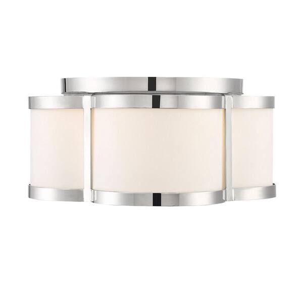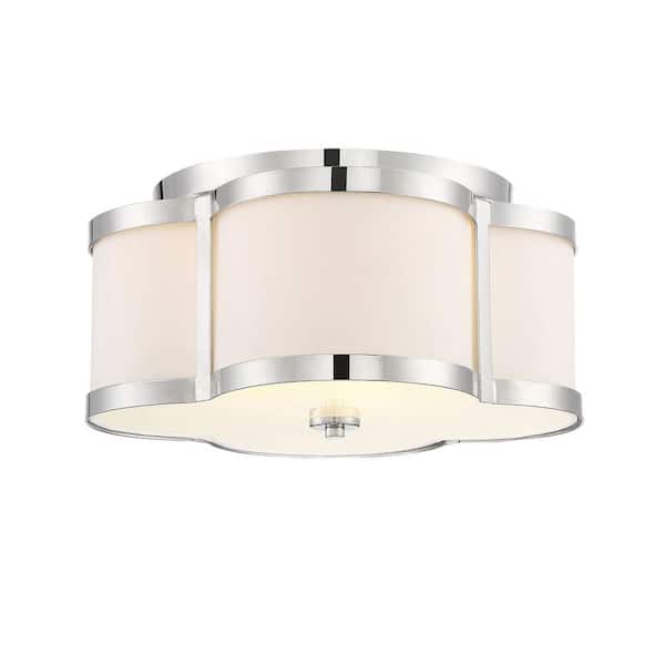 Lacey 16 in. W x 8 in. H 3-Light Polished Nickel Semi-Flush Mount Ceiling Light with White Fabric Shade