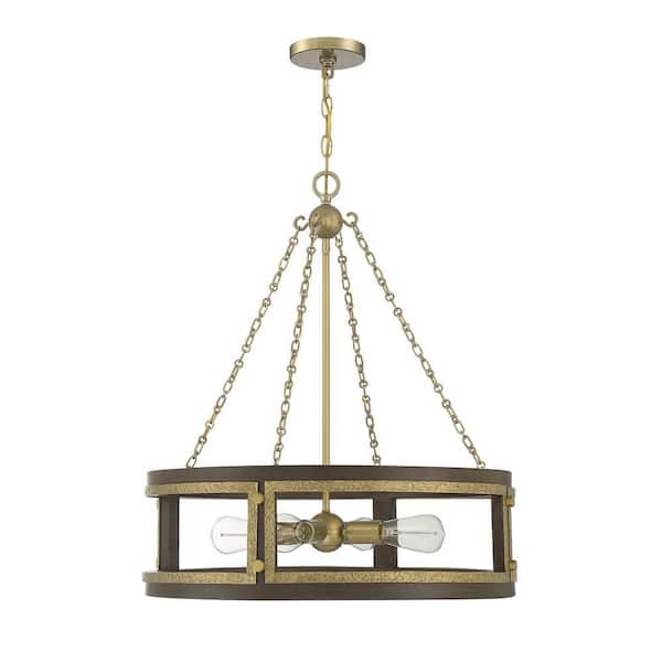 Lakefield 4-Light Burnished Brass/Walnut Shaded Pendant Light