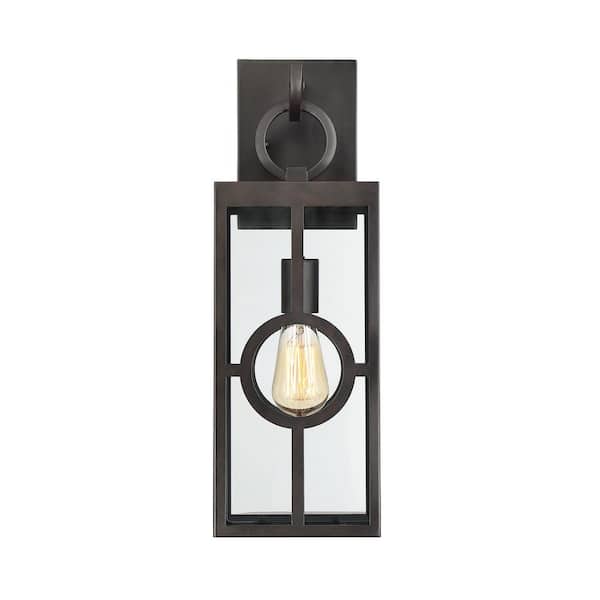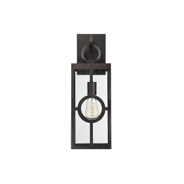 Lauren 6.5 in. W x 19.25 in. H 1-Light English Bronze Hardwired Outdoor Wall Sconce with Clear Glass Shade