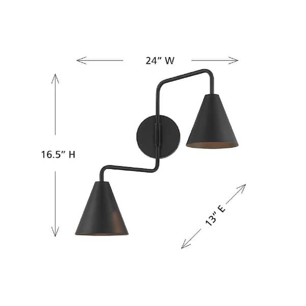 Meridian 24 in. W x 16.5 in. H 2-Light Matte Black Modern Adjustable Wall Sconce