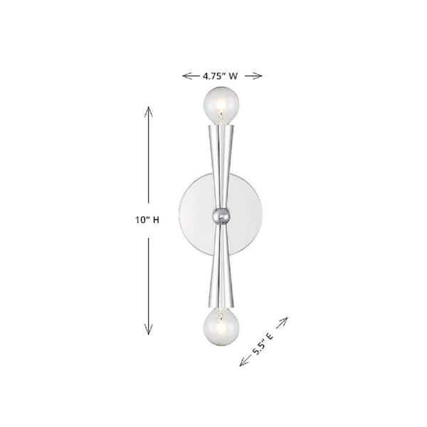 Meridian 4.75 in. W x 10 in. H 2-Light Chrome Contemporary Wall Sconce