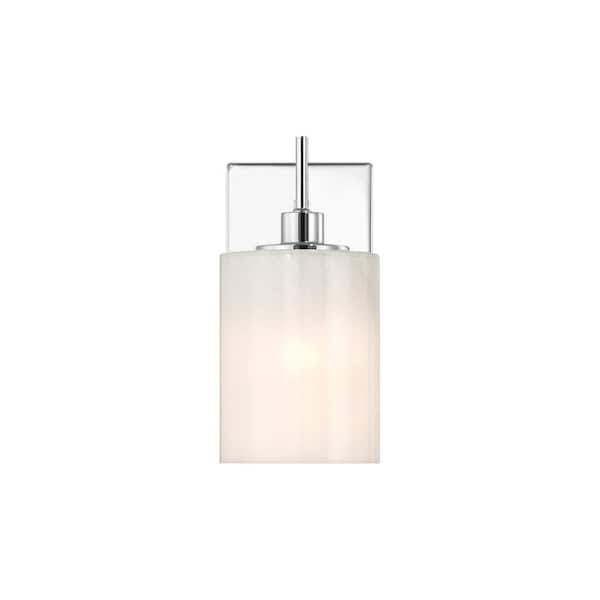 Meridian 4.75 in. W x 9.75 in. H 1-Light Chrome Modern Wall Sconce with Strie Glass Shade