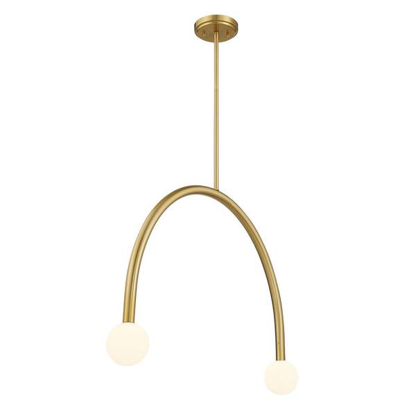 Meridian 4 in. W x 21 in. H 2-Light Natural Brass Contemporary Chandelier with White Opal Glass Shades