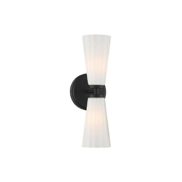 Meridian 5.13 in. W x 14.5 in. H 2-Light Matte Black Contemporary Wall Sconce with White Fluted Glass Shades