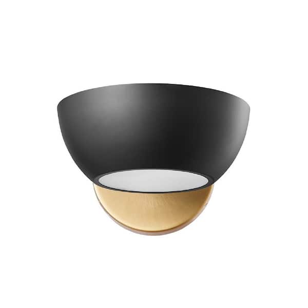 Meridian 7 in. W x 5 in. H 1-Light Matte Black/Natural Brass Contemporary Wall Sconce with Metal Shade