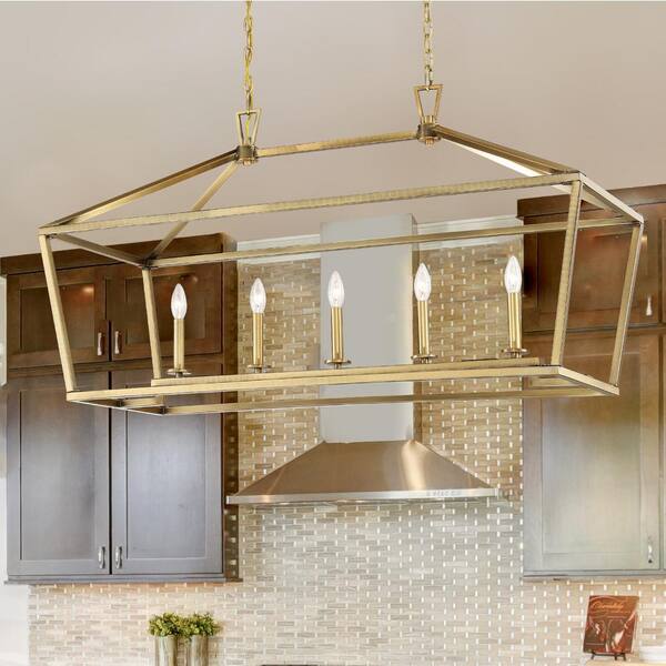 Townsend 44 in. W x 23.5 in. H 5-Light Warm Brass Linear Chandelier with Metal Cage Frame